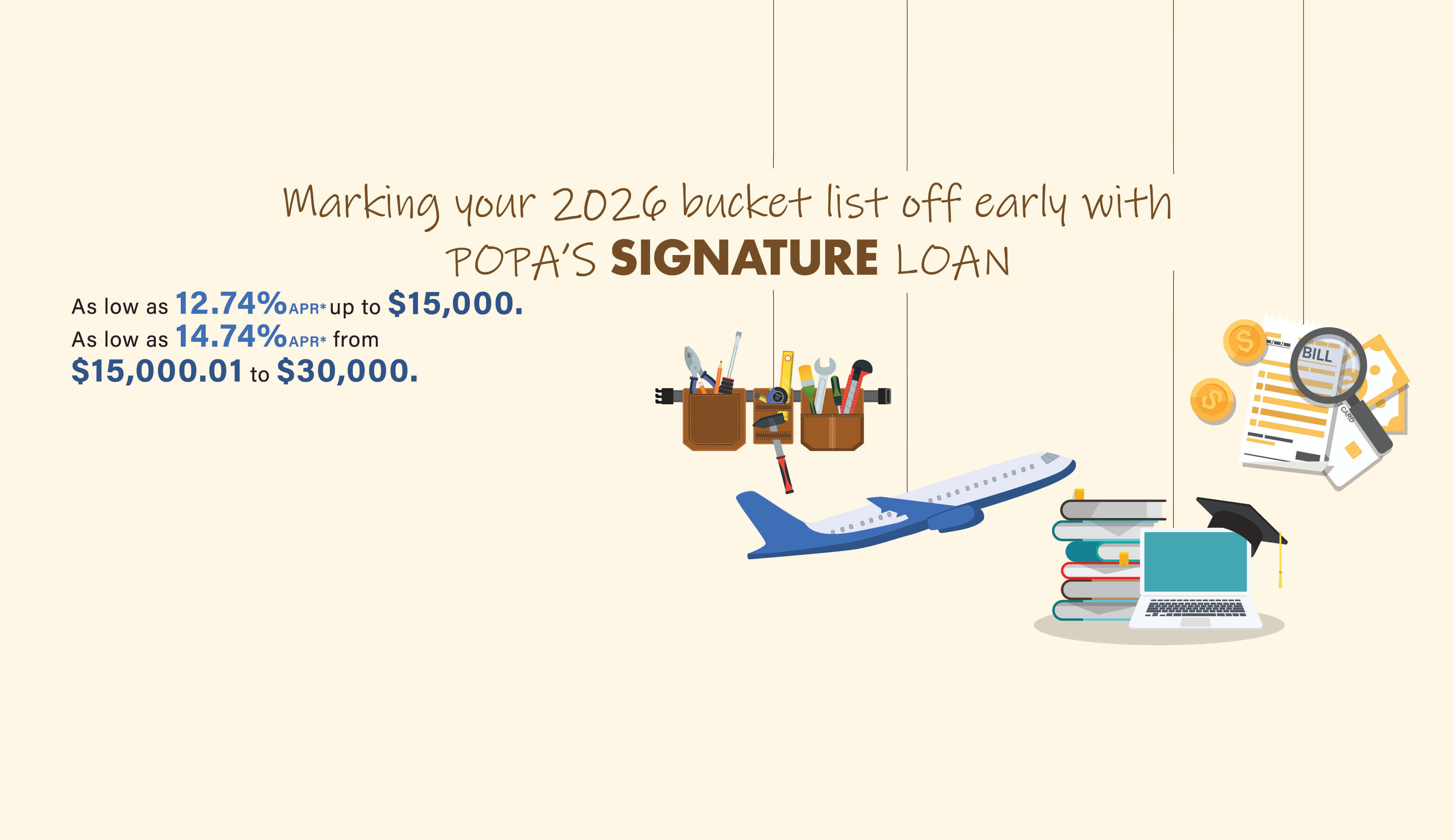** The rates shown reflects a Relationship Benefits discount of 0.25% for members with a POPA FCU direct deposit (Minimum $250 per month), or an automatic payment.